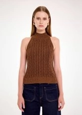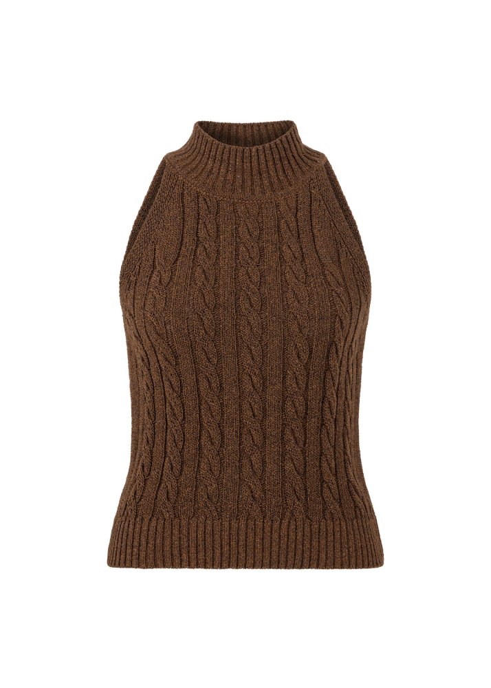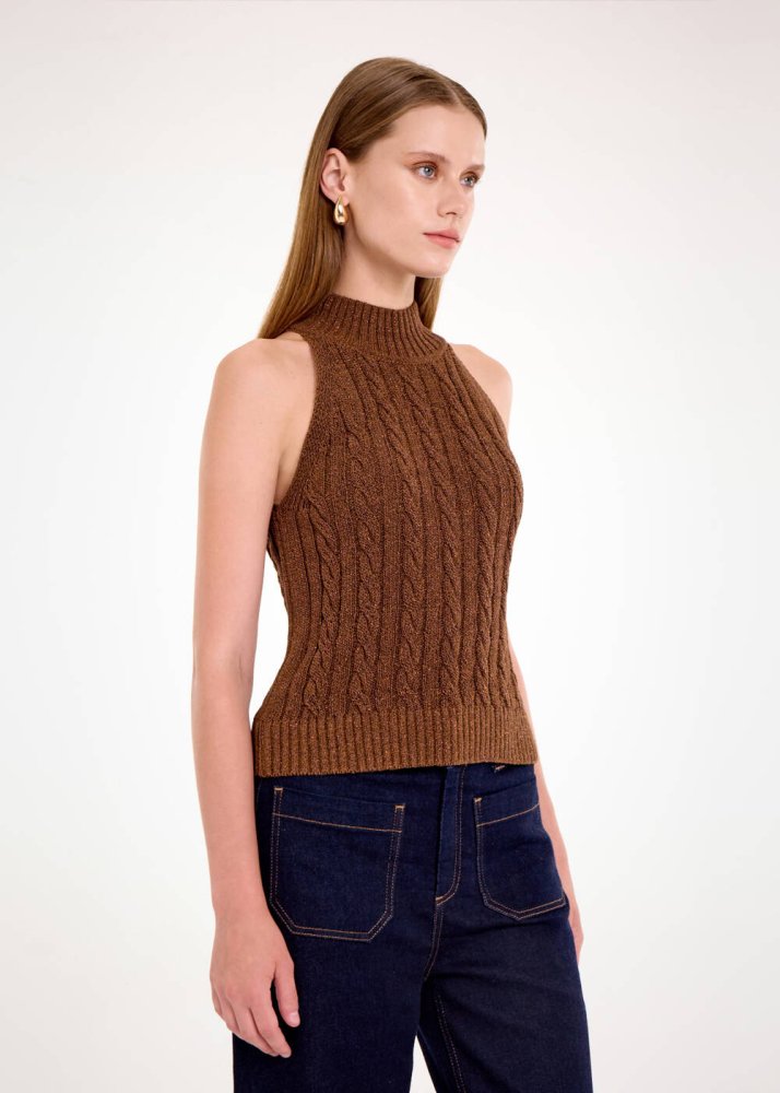 CABLE DETAİLED GLITTER COFFEE KNIT TOP