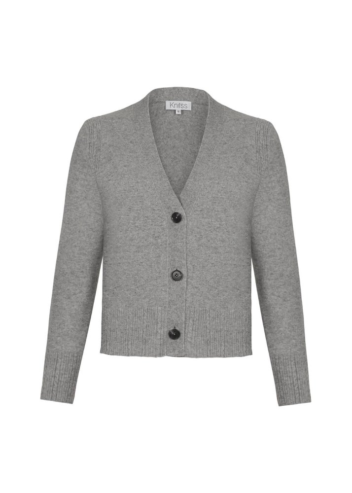 Cable Detailed Grey Cashmere Knit Cardigan