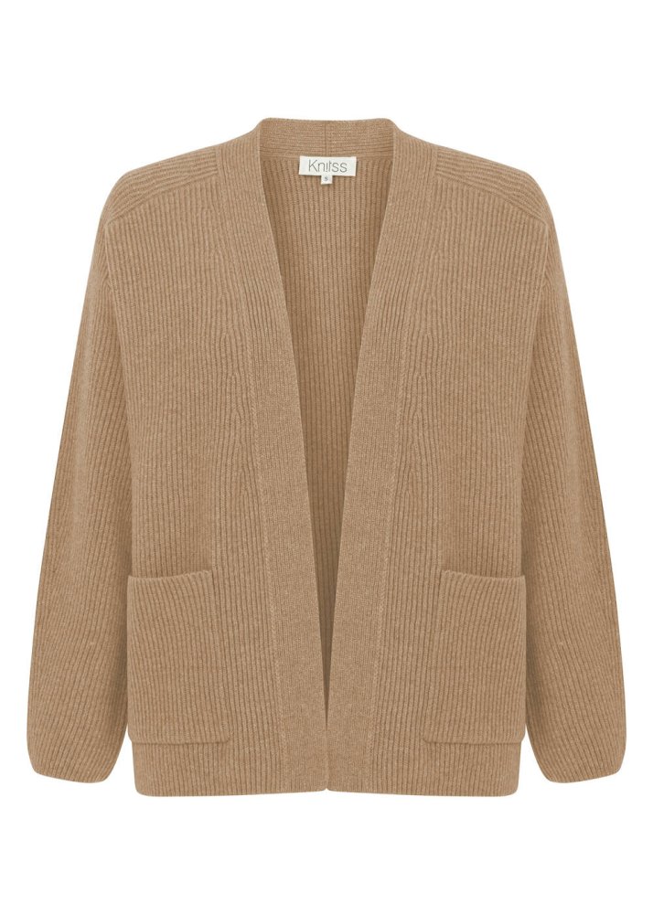 CAMEL CASHMERE KNIT CARDIGAN