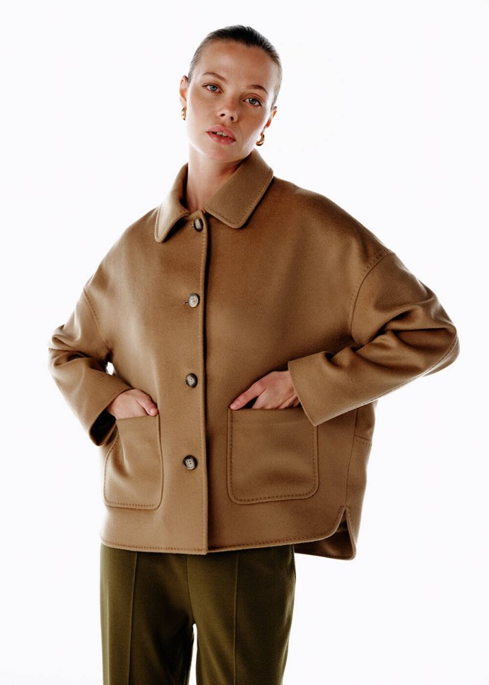 Sade ama etkileyici, klasik ama modern, camel yün kaban her stile kusursuz uyum sağlar. İtalyan kumaş kalitesiyle tasarlanan bu parça, yumuşak dokusuyla sıcaklık sunarken, %100 yün içeriğiyle lüks bir his yaratır. Relax fit kesim rahat bir siluet sağlarken, gömlek yaka ve düğme detayları zamansız bir zarafeti öne çıkarır. Cepli tasarımıyla hem işlevsel hem de şık bir kullanım sunar. Knitss kadınının sade ama iddialı stilini yansıtır.