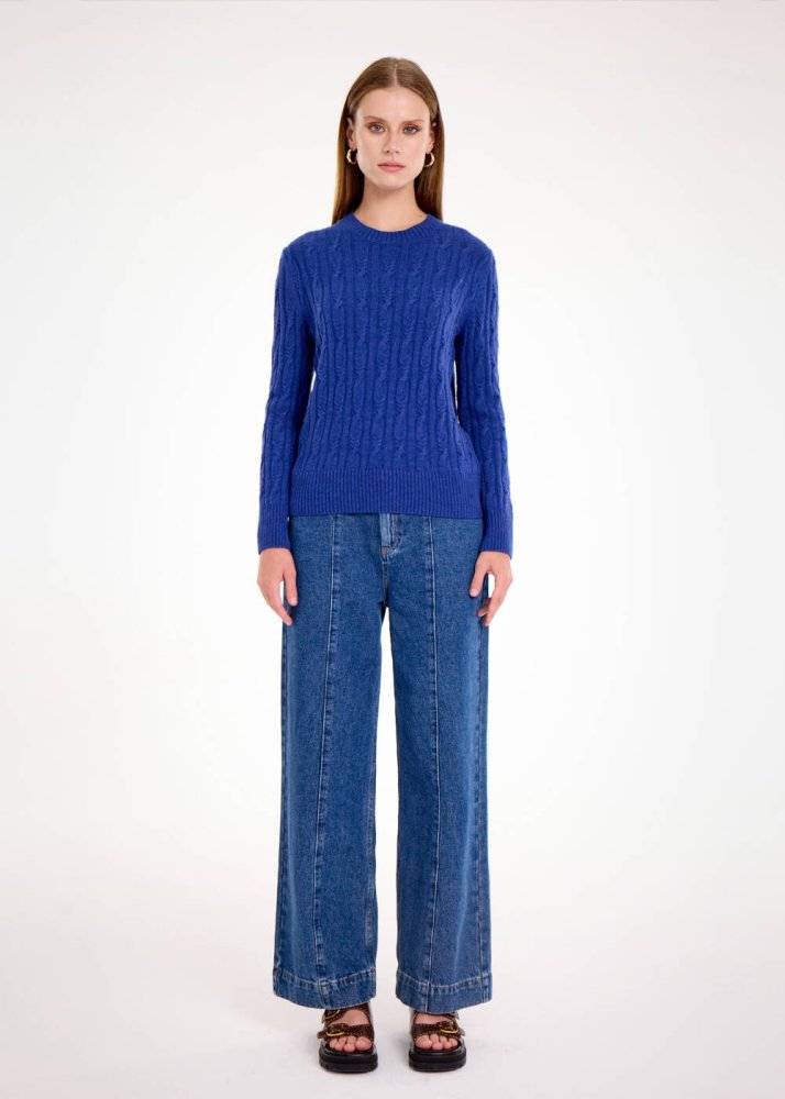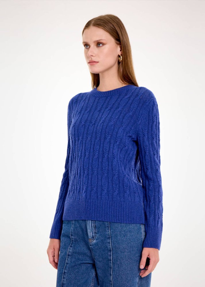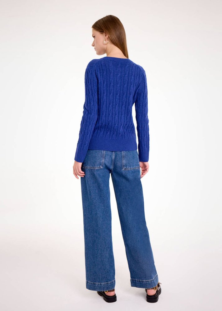 CASHMERE BLEND CABLE BLUETTE KNIT SWEATER