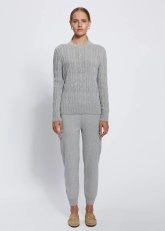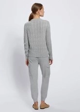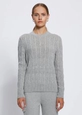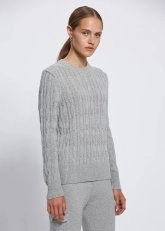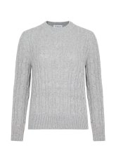 CASHMERE BLEND CABLE GREY KNIT SWEATER