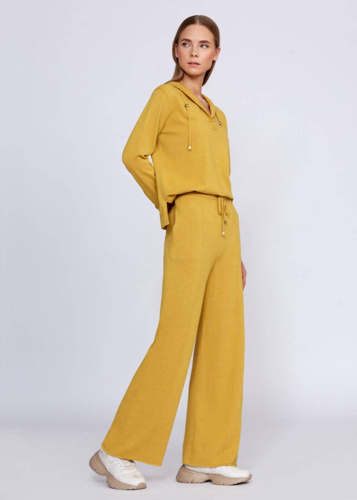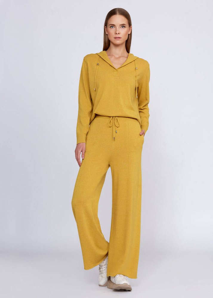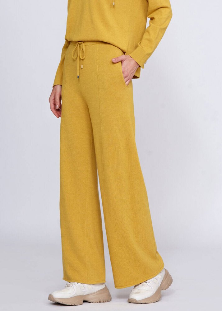 Cashmere Blend Drawstring Mustard Knit Pant