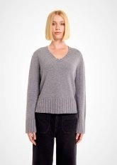 CASHMERE BLEND V NECK MID GREY SWEATER