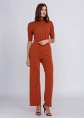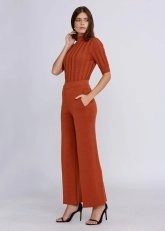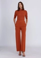 Cep Detaylı Turuncu Merino Yün Triko Pantolon