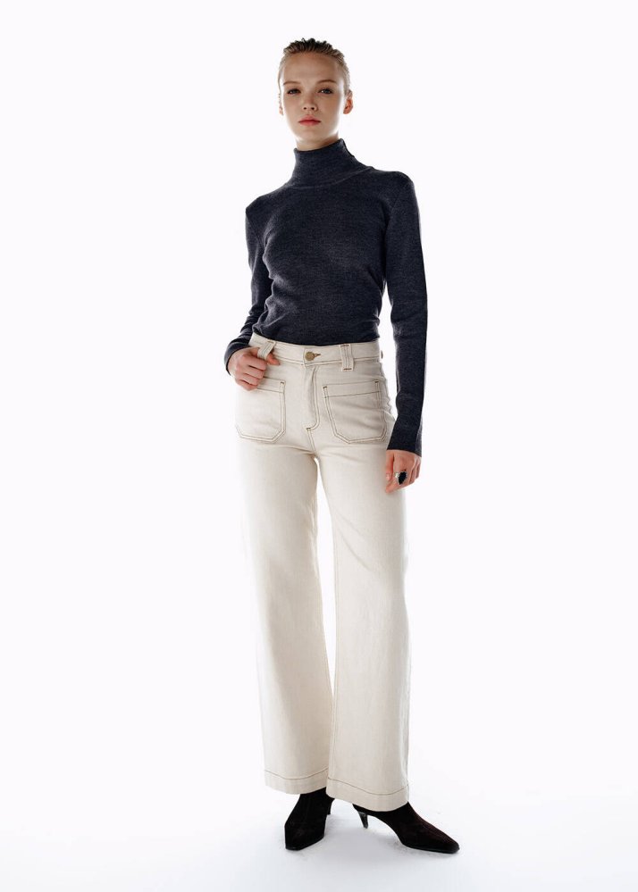 Knitss’in sade ama etkileyici çizgisini taşıyan cepli naturel denim pantolon, doğallığı modern bir zarafetle buluşturuyor. Orta bel formu ve rahat kesimiyle gün boyu konfor sunarken, naturel tonuyla her kombine kolayca uyum sağlıyor. %98 pamuk içeriğiyle nefes alan kumaş, elastan dokusuyla hareket özgürlüğü yaratıyor. Yan ve arka cep detayları, pantolona fonksiyonel bir şıklık kazandırıyor. Basic trikolarla minimal, renkli üstlerle dinamik bir stil oluşturabilirsiniz.