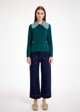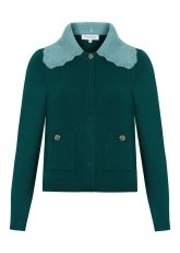 Özgün tasarımı ve çarpıcı rengi ile kışlık kombinlerinize iddialı bir stil taşıyan malakit yeşili hırka, çıkarılabilir yaka detayı ile dikkat çeker. Geri dönüştürülmüş sertifikalı İtalyan elyafları ile üretilen yeşil hırka, sürdürülebilir modanın şık bir temsilcisidir. Çıkarılabilir yaka detayı ile çok yönlü bir kullanım sunan hırka, zarif ön cepleri ile fonksiyonelliğini sofistike dokunuşla tamamlar.