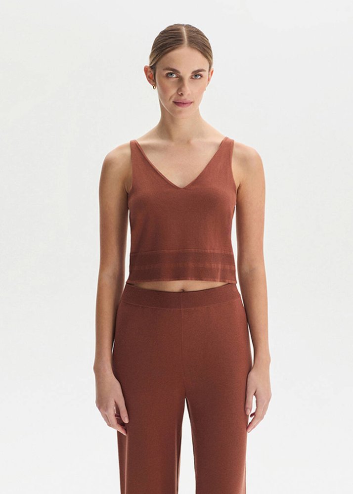 CINNAMON COTTON SILK BLEND KNIT TOP