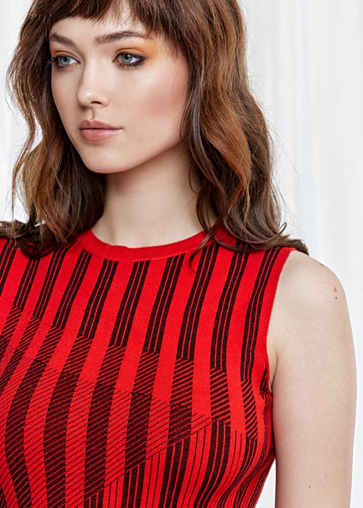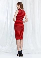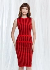 Çizgi Desen Kırmızı Uzun Triko Elbise