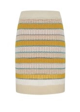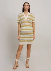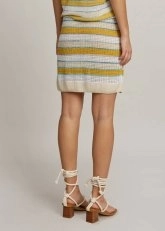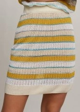 Knitss yazlık triko etek, keten karışımlı İtalyan iplik kalitesi çizgili ajur örgü deseni ile benzersizdir. İnce transparan triko etek astarlı modeli ve rahat kesimi ile çok kullanışlıdır. Keten ağırlıklı içeriği ile yaz sıcaklarında ferahlık sağlar. Hem feminen hem rahat günlük stil için uygun bir kombin tamamlayıcısıdır. Metalik ipliğin parıltısı ile çok çarpıcıdır.