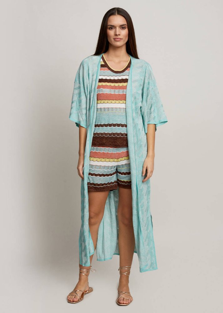 Knitss triko şort; ajur örgüsü, çizgi ve renk kullanımındaki modern stili ile ilk görüşte fark yaratır. İçeriğindeki FSC sertifikalı İtalyan iplikler, ormanların korunmasına yönelik standartlara uygun üretilmiştir. İnce ve terletmeyen yüzeyi ile yazın triko giymenin konforunu yaşatır. İçindeki metalik iplik detayı ile zarif bir parıltıya sahiptir. Günün her anına uygun bir modeldir.