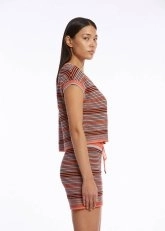 Çizgi Desenli Turuncu Mavi Triko Şort