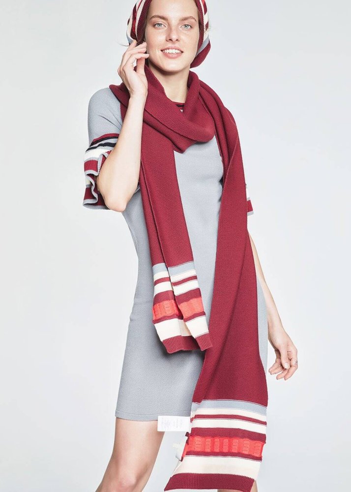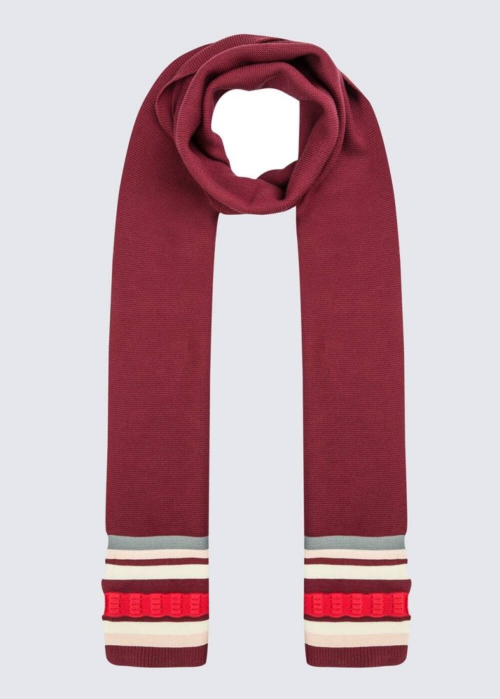 Çizgili Bordo-Kırmızı Yün Örgü Atkı