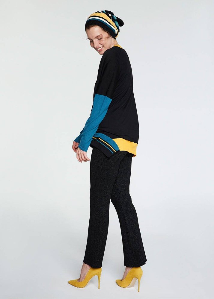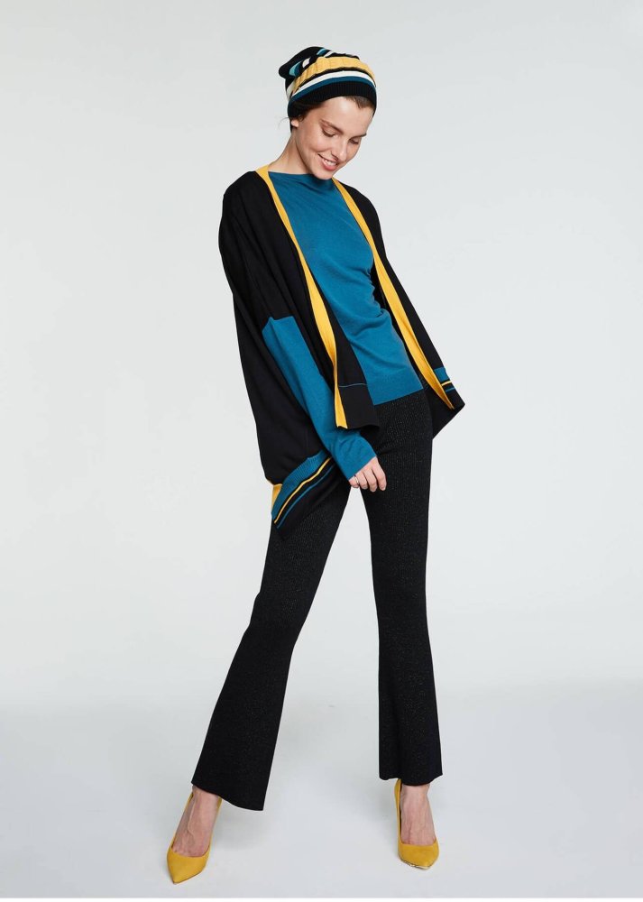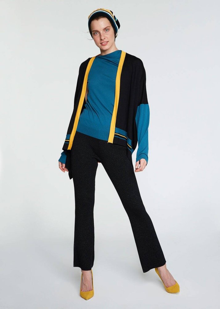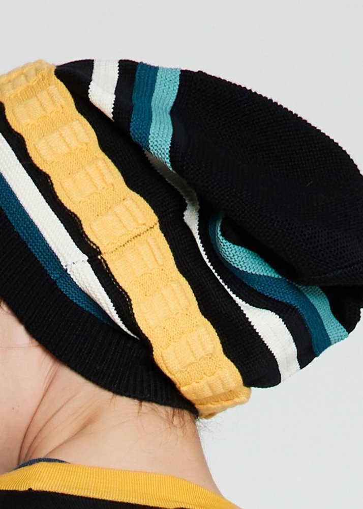Çizgili Siyah-Mavi Yün Örgü Şapka