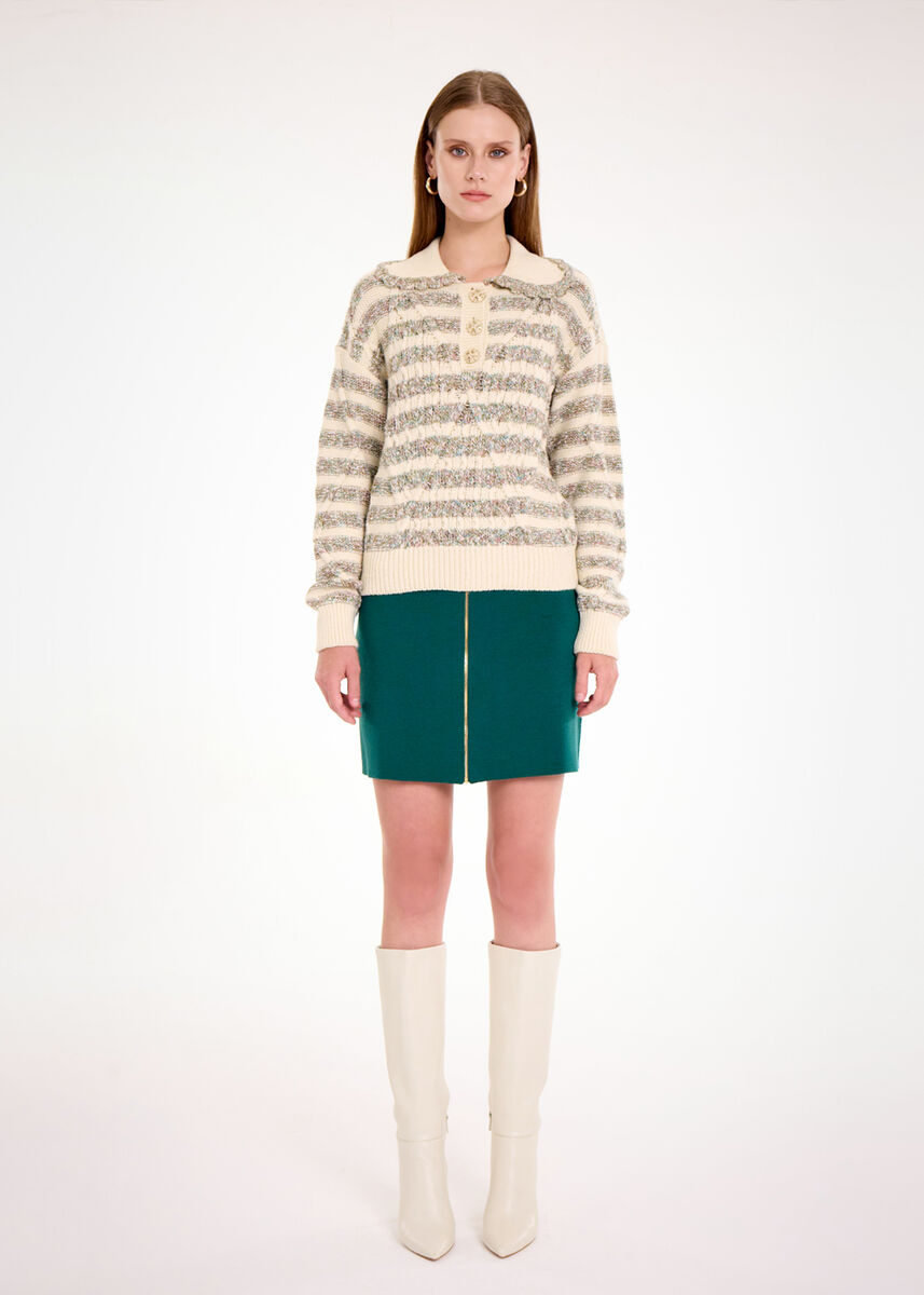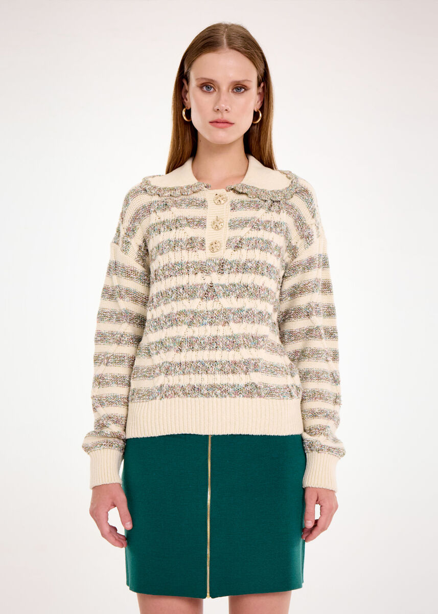 COLLAR DETAILED TEXTURE CABLE SWEATER