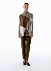 PLEATED DETAIL WOOL PANTS OLIVESTONE