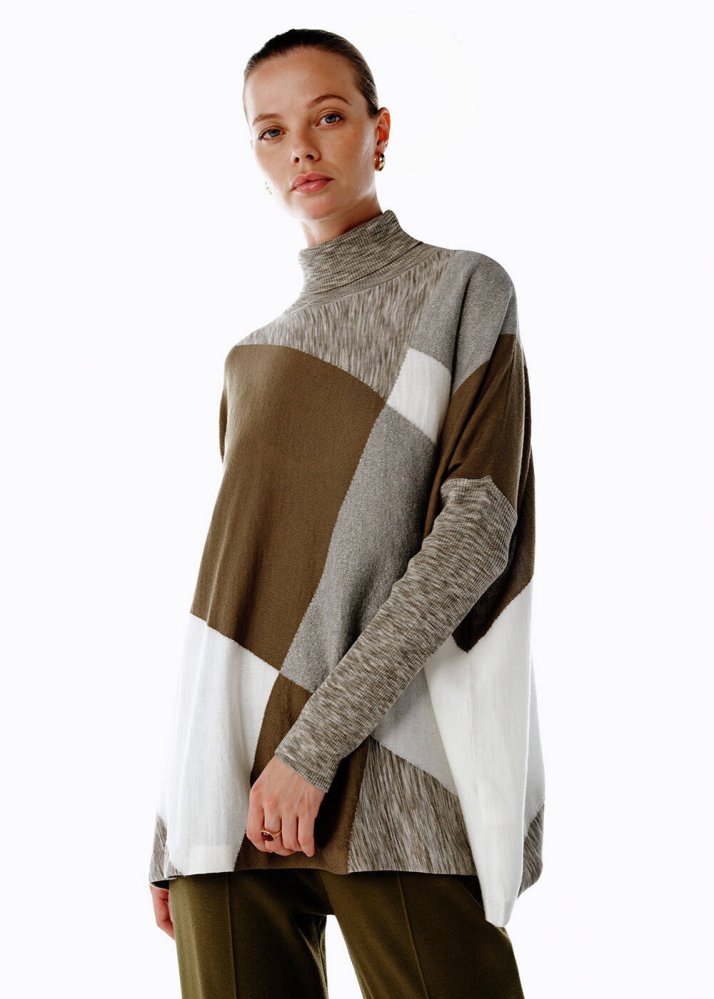 COLOR BLOCK MERINO WOOL BLEND KNIT TUNIC