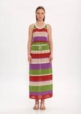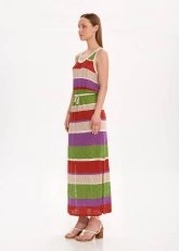Belden bağcıklı renk bloklu uzun triko elbise; cesur renk kombinasyonu, zarif triko örgü dokusu ve konforlu çağdaş stili ile Knitss farkını her detayında hissettirir. Sürdürülebilir İtalyan ipliklerinden üretilen bu spor-şık tarzdaki çok renkli maxi triko elbise, rahat kalıbı ve kısmı astarı ile konforu ön planda tutan şıklık sunar. İncecik trikonun üzerinizde salınışına bu capcanlı elbise ile izin verin.