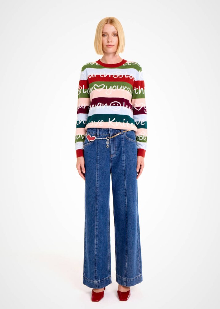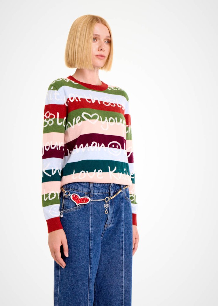 COLORFUL SLOGAN PATTERNED SWEATER