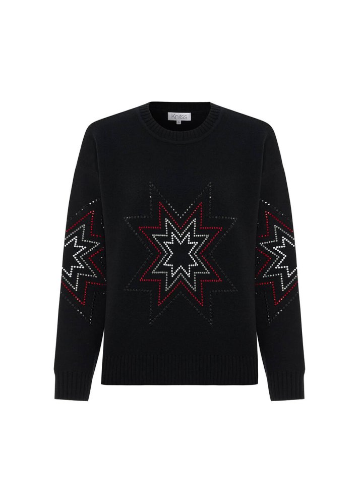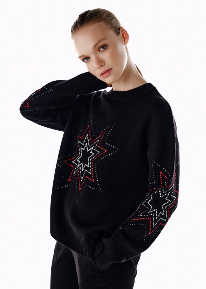 COLORFUL STAR PATTERNED MERINO WOOL SWEATER BLACK