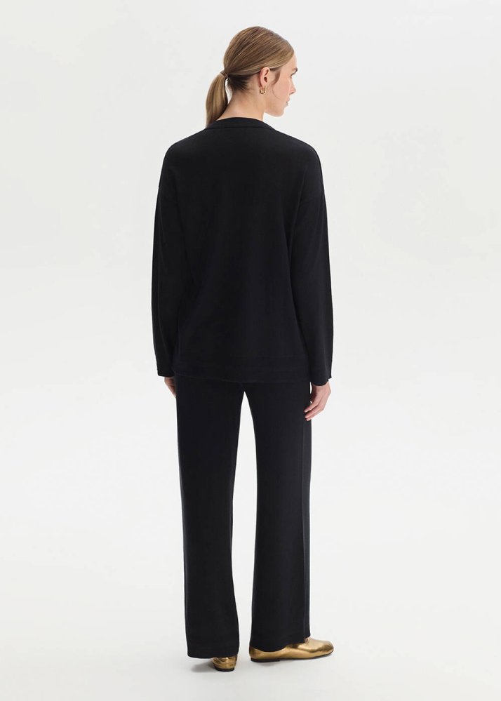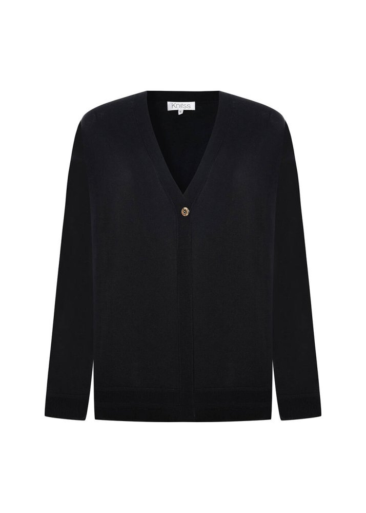 COTTON SILK BLEND BLACK KNIT CARDIGAN