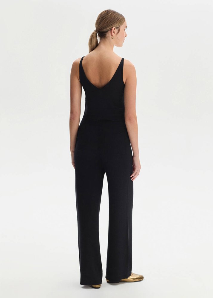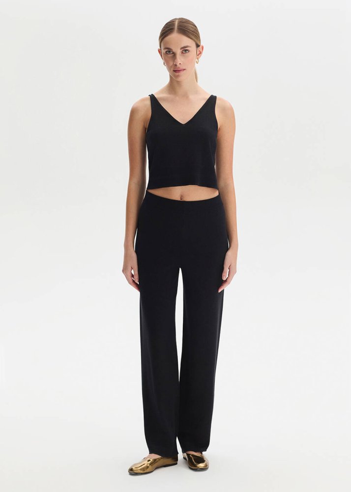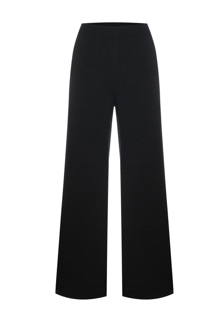 COTTON SILK BLEND BLACK KNIT PANTS
