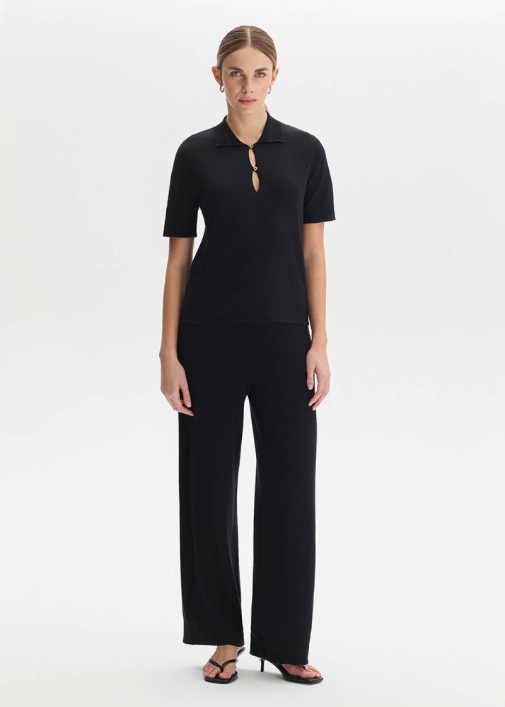 COTTON SILK BLEND BLACK KNIT TOP