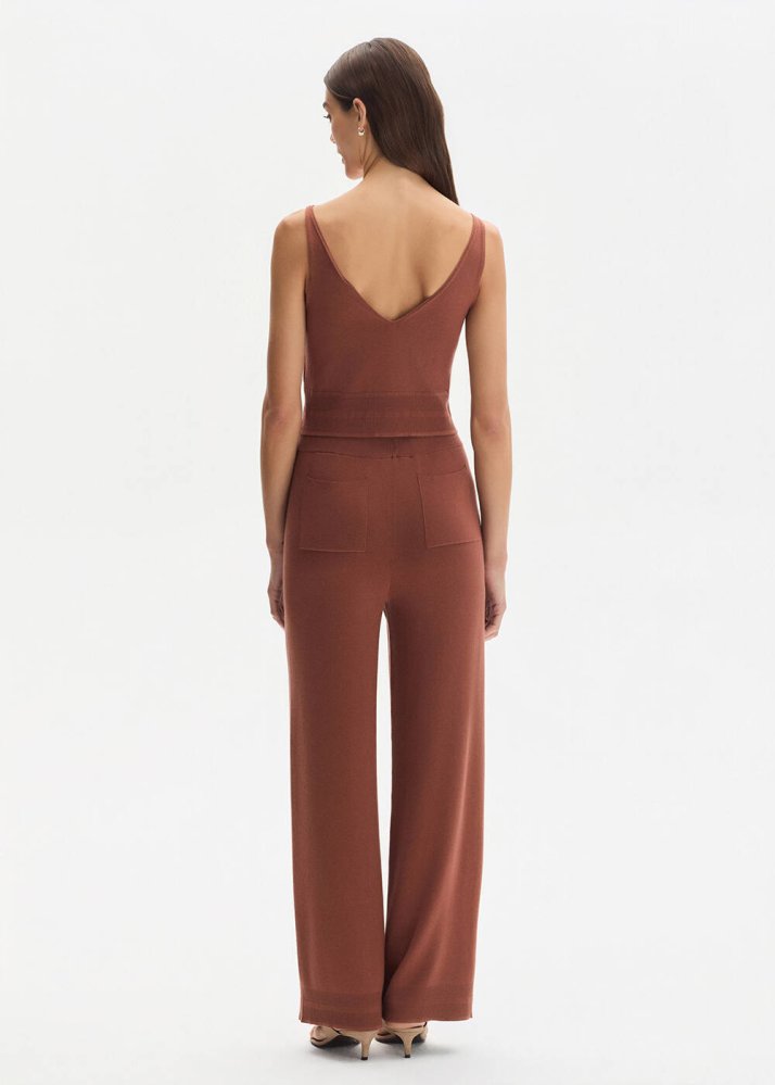 COTTON SILK BLEND CINNAMON KNIT PANTS