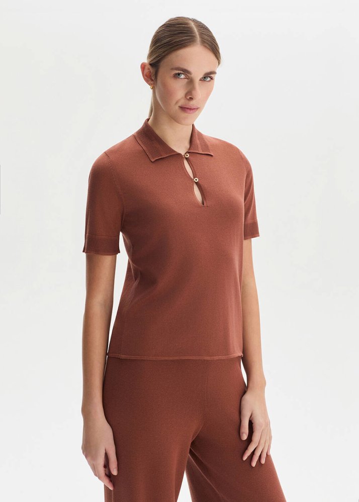 COTTON SILK BLEND CINNAMON KNIT TOP