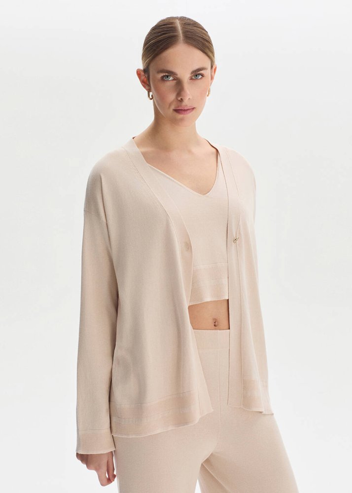 COTTON SILK BLEND NATURAL KNIT CARDIGAN