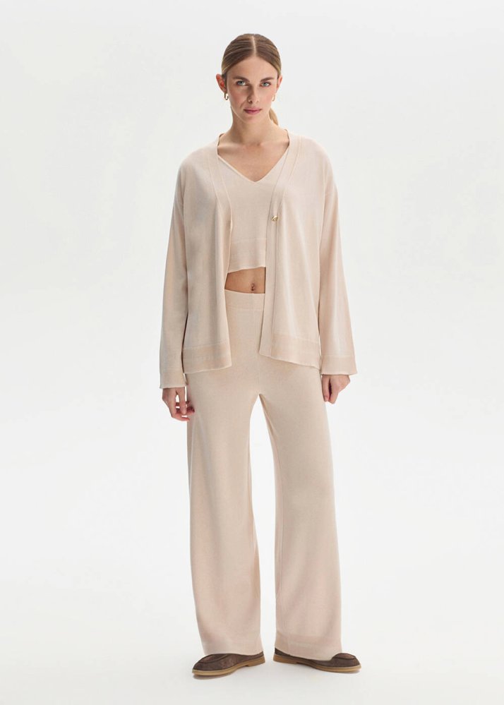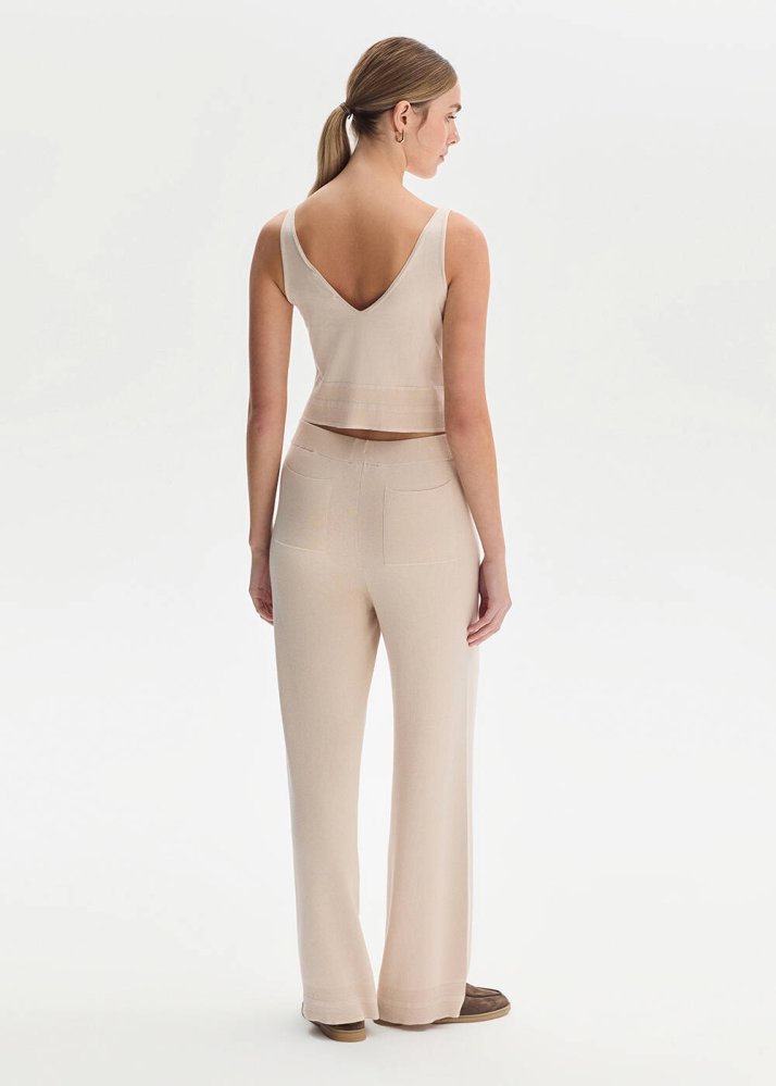 COTTON SILK BLEND NATURAL KNIT PANTS