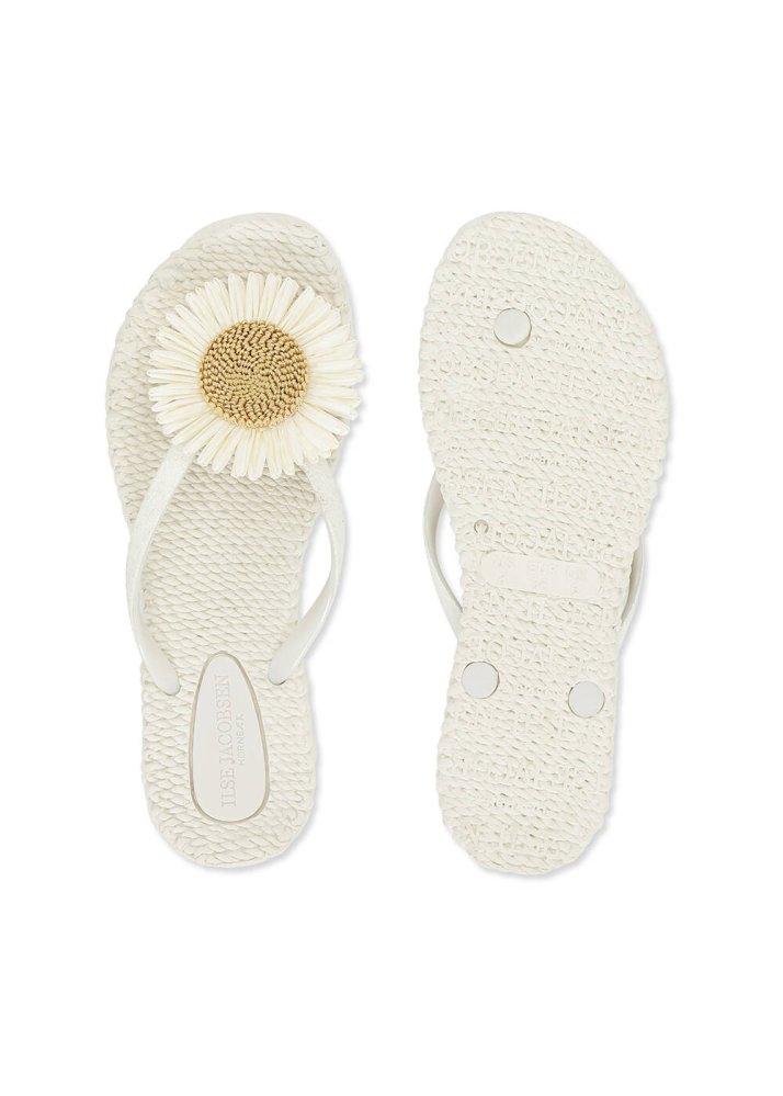 Cream Flower Detail Flip-Flops - ILSE JACOBSEN