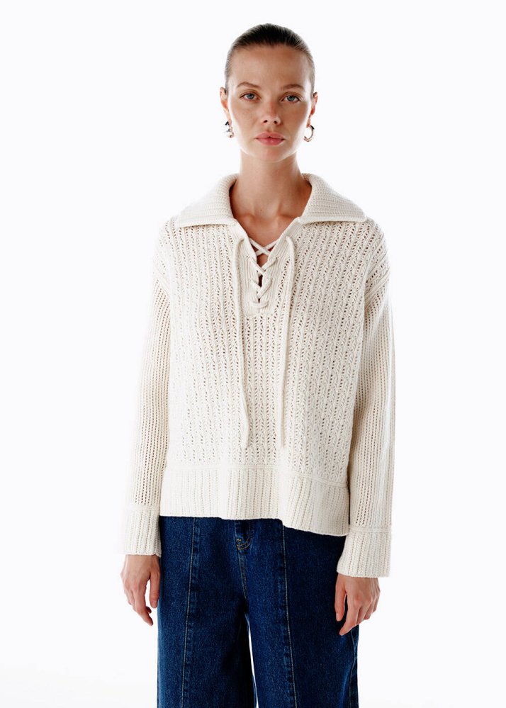 CREAM ORGANIC COTTON CASHMERE BLEND SWEATER