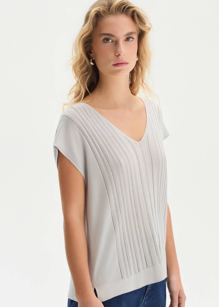 CRYSTAL SILK BLEND KNIT TOP