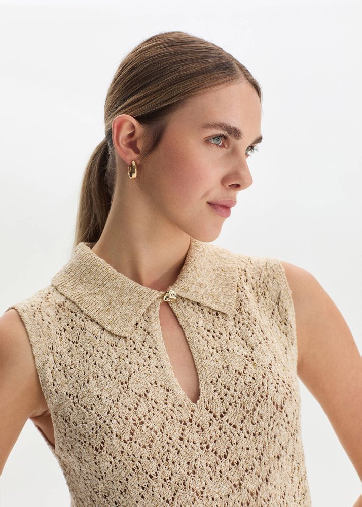 Damla Yaka Bej Triko Üst