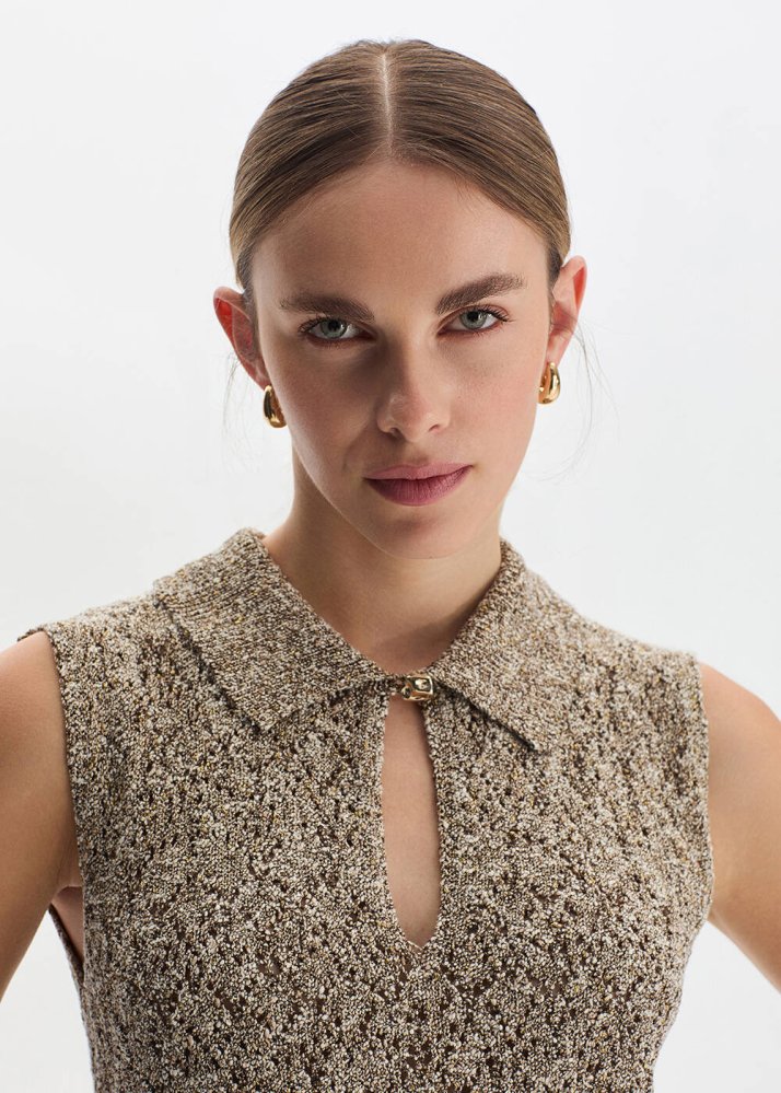 Damla Yaka Kahve Triko Üst