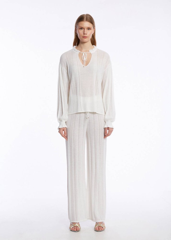 Ajur Örgü Beyaz Triko Pantolon