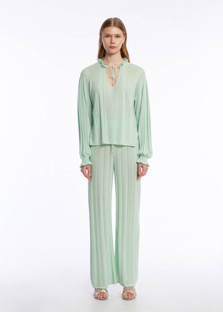 Ajur Örgü Mint Yeşili Triko Pantolon