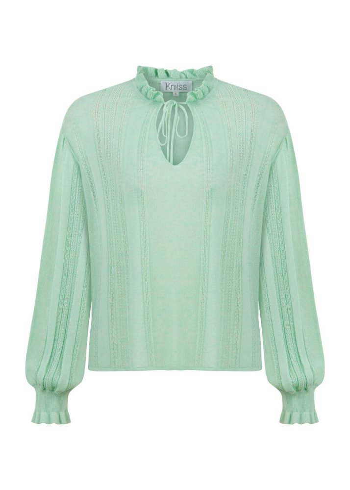 Damla Yaka Özel TaSarım Mint Yeşili Triko Üst