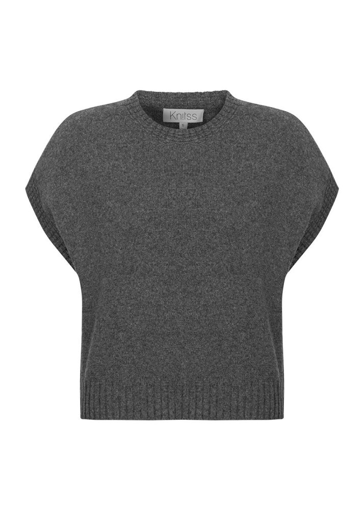 DARK GREY CASHMERE KNIT TOP