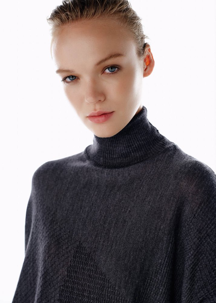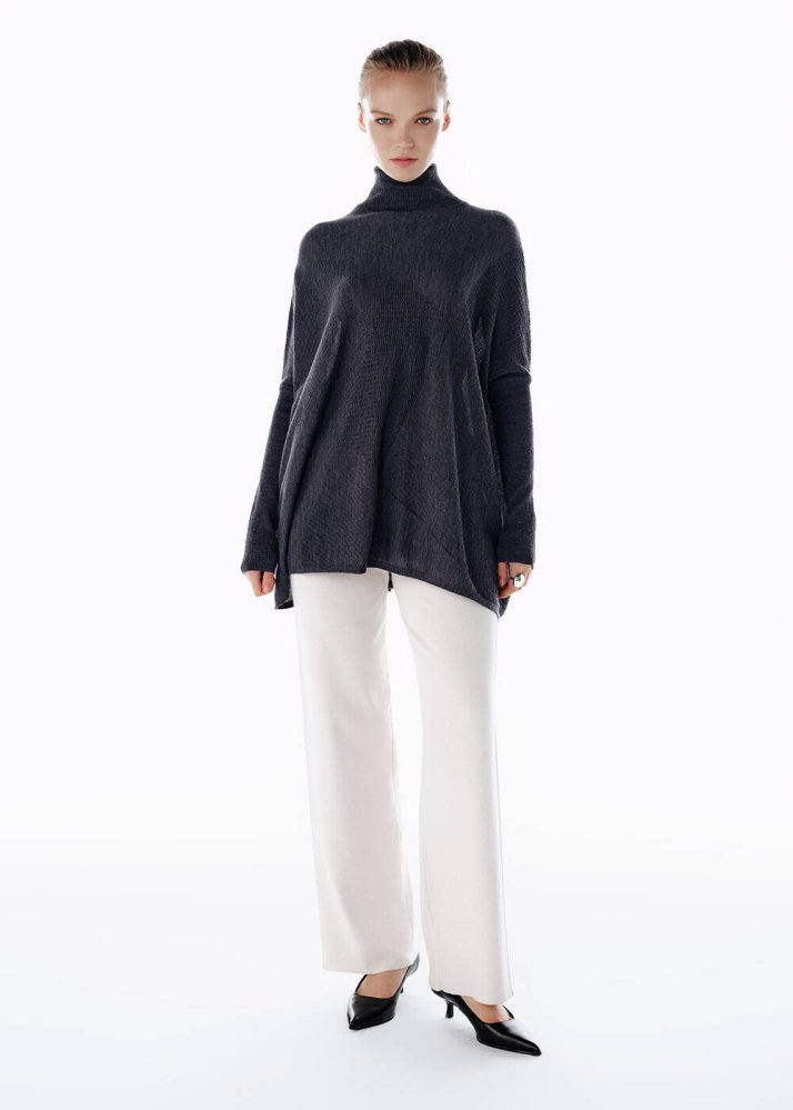 DARK GREY MERINO WOOL BLEND KNIT TUNIC