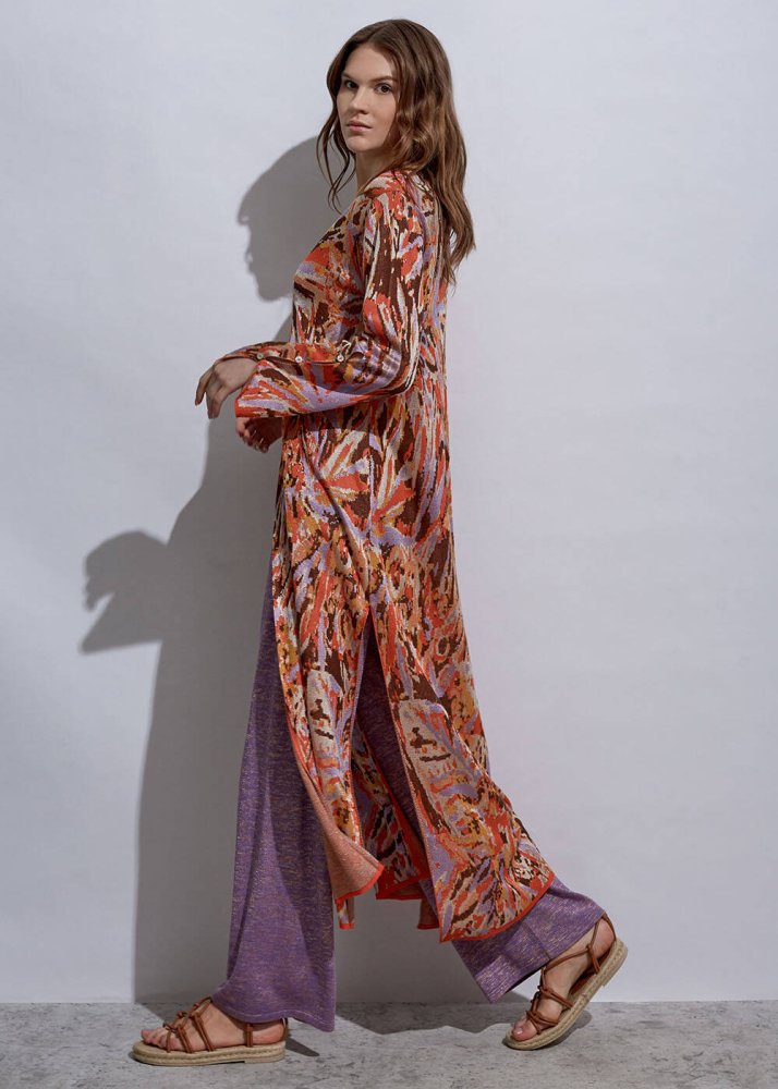 Deep Slit Detailed Jacquard Patterned Knit Tunic