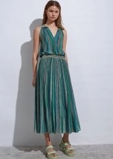 Yeşil triko etek, triko konforunu ve şıklığını Knitss’e özgü detaylarla buluşturan özel bir tasarımdır. Degrade desenli kloş triko etek, ormanlarda biyolojik çeşitliliğin korunmasına yardımcı olan FSC sertifikalı İtalyan iplikten üretilmiştir. Hafta içi ve hafta sonu kombinlerinize renk katacak triko etek modeli ile Knitss şıklığını stilinize taşıyın.