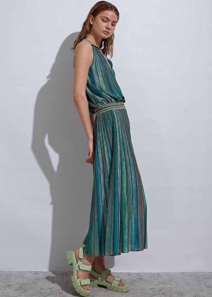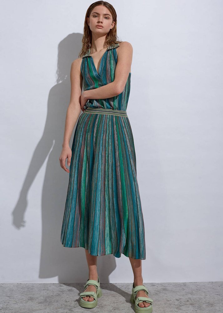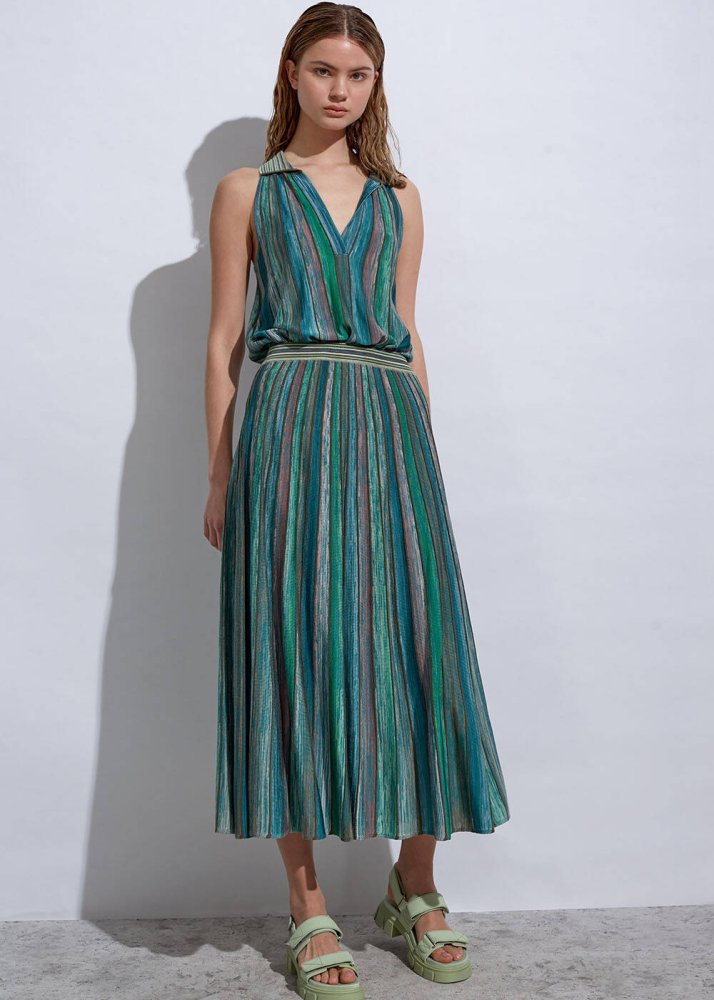 Degrade Desenli Yeşil Triko Etek