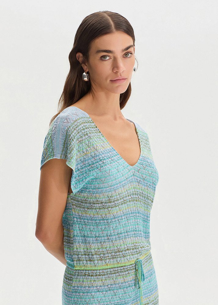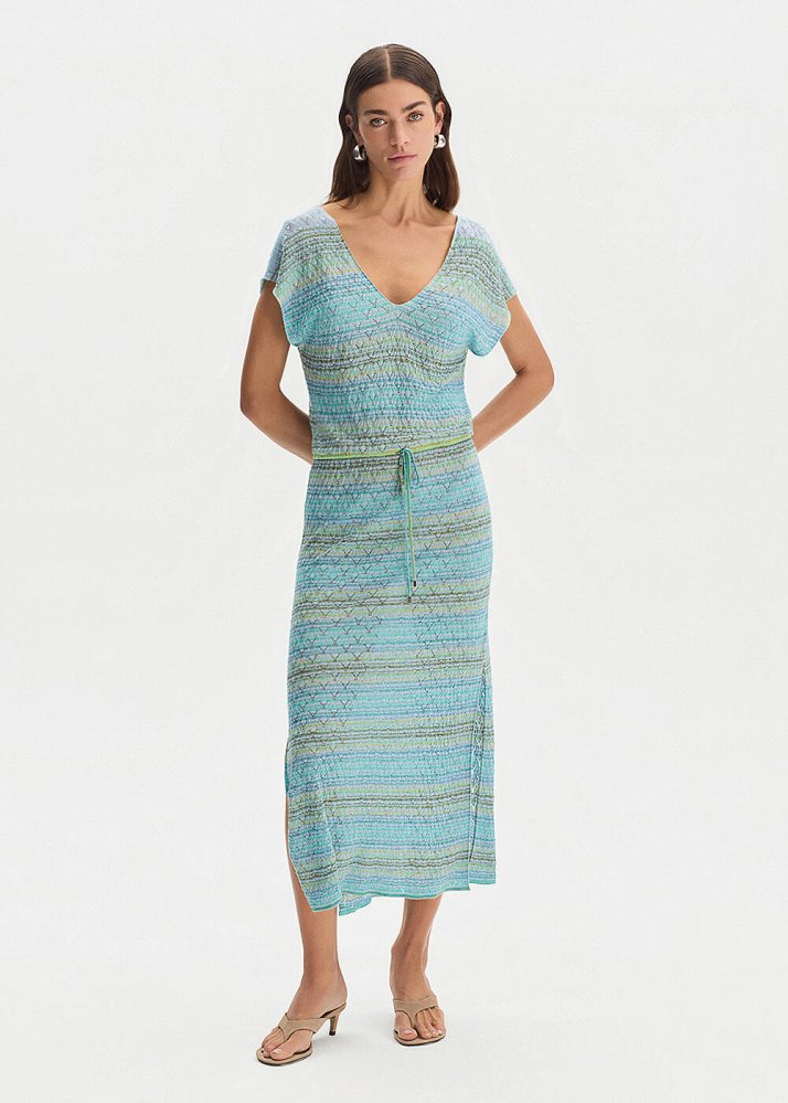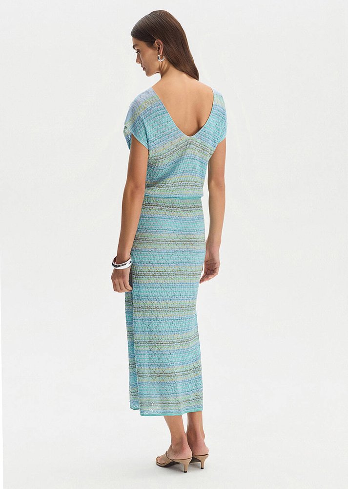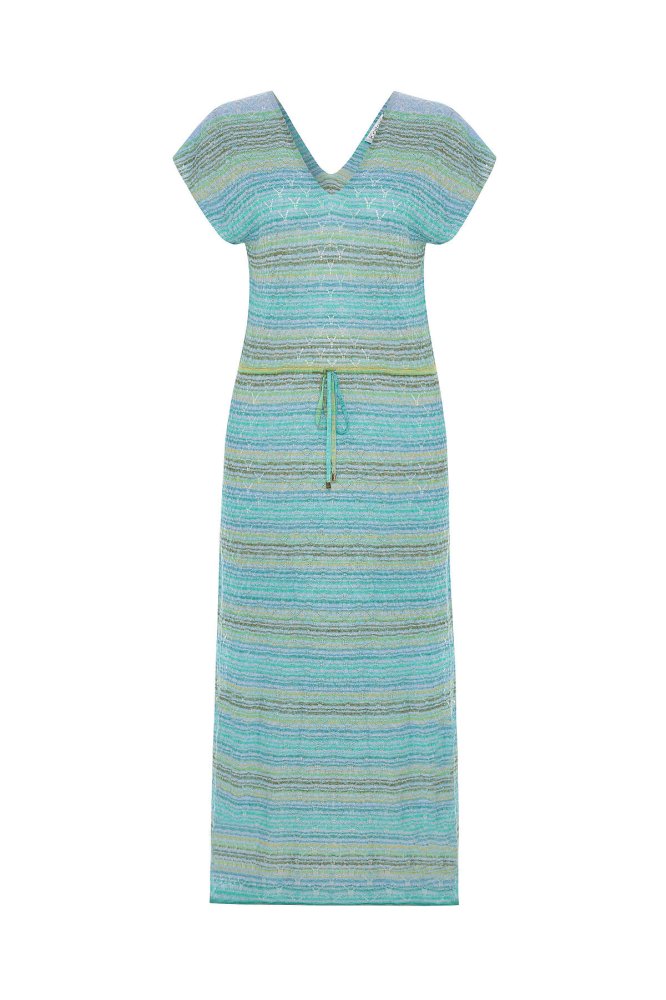 DEGRADE STRIPE GREENISH KNIT DRESS