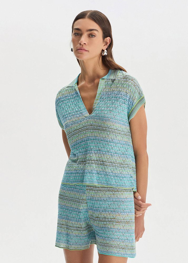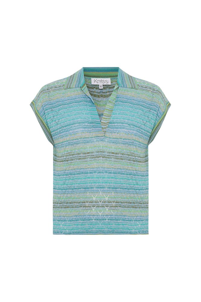 DEGRADE STRIPE POLO NECK GREENISH KNIT TOP