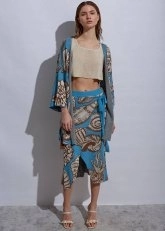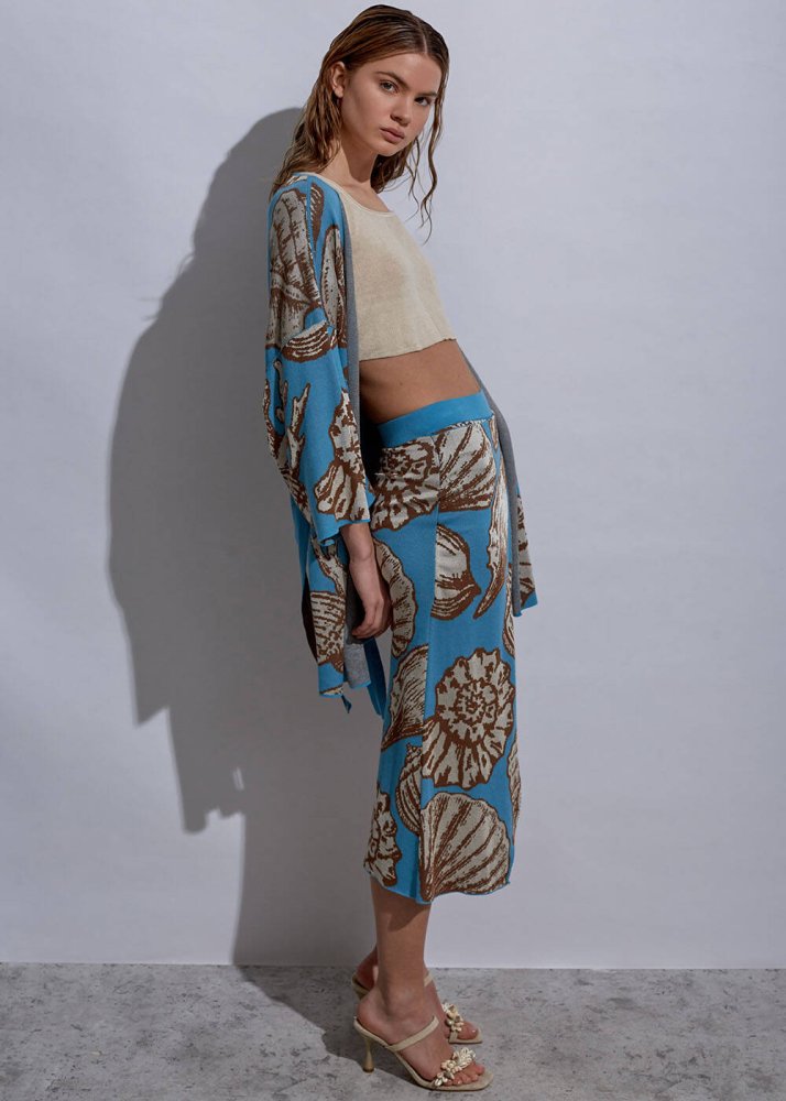 Deniz kabuğu deseniyle sahil stilinize Knitss şıklığı katacak triko kimono ile tanışın. FSC sertifikalı İtalyan viskon iplik kalitesi ve çağdaş tasarımı ile stilinize değer katacak triko kimono modeli, kuşak detayı ve rahat kesim kalıbı ile yazlık stilinize konfor katacak parçalardan biridir.