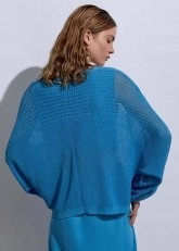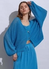 Deniz Kabuğu Düğmeli Mavi Keten Triko Hırka