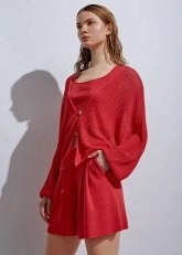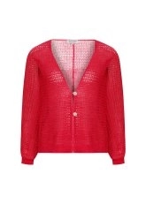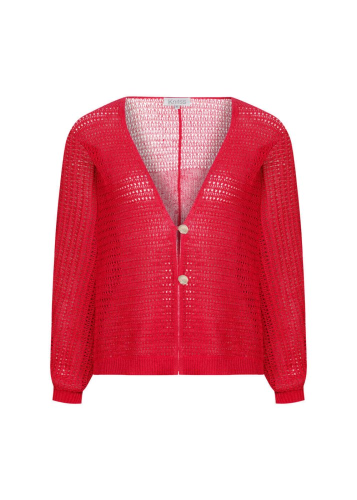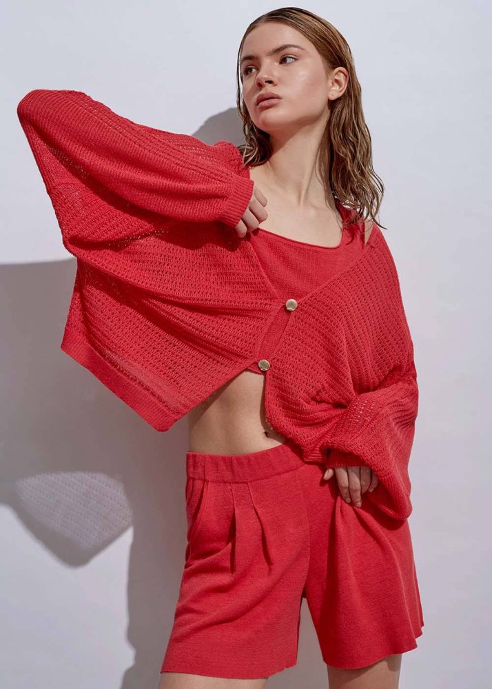 Deniz Kabuğu Düğmeli Mercan Keten Triko Hırka