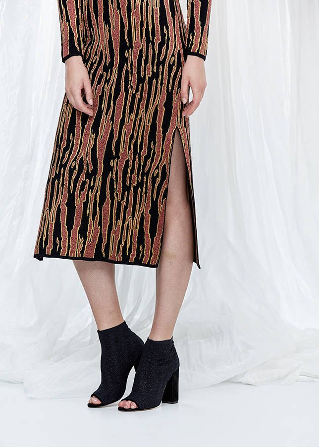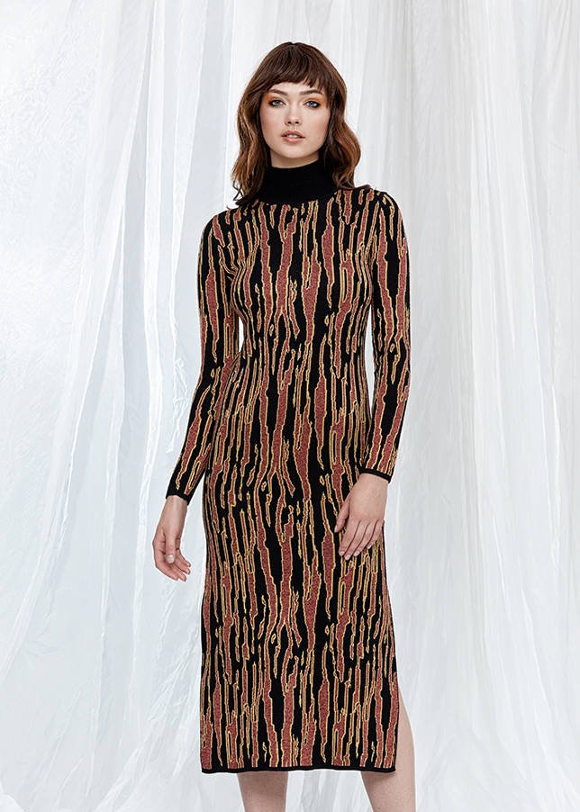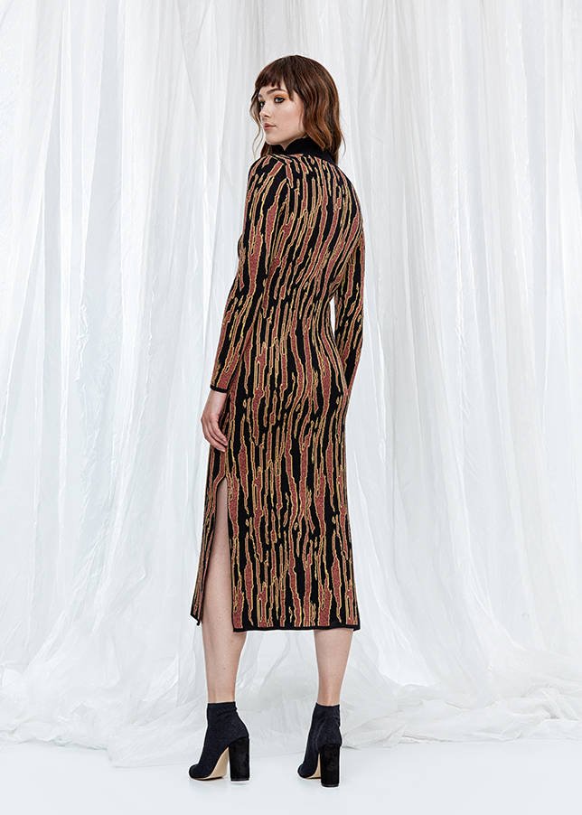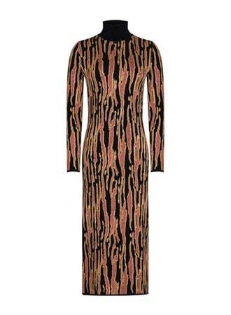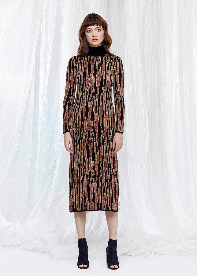Desenli Boğazlı Uzun Kollu Triko Elbise